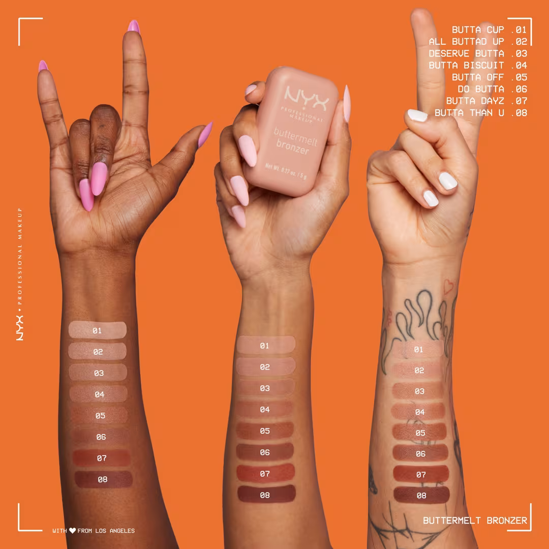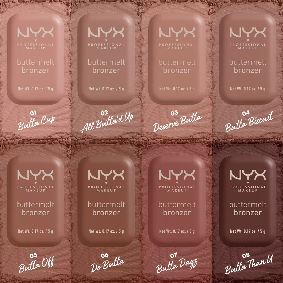 El bronceador Buttermelt de NYX Professional Makeup se difumina como polvo y se desliza como mantequilla. Para un bronceado radiante con un acabado natural y una duración de 12 horas.