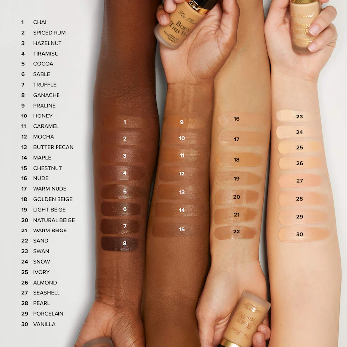 Esta base de acabado natural reduce la apariencia de los poros, mejora el tono de la piel y no se desvanece durante todo el día. No se apelmaza, no forma poros, no deja marcas y es apta para fotos.