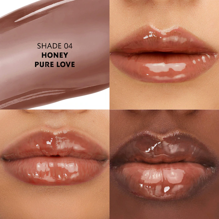 Un brillo labial con aceite, visiblemente voluminizador, que proporciona un brillo jugoso y brillante, labios con un aspecto más voluminoso y una sensación ultrahidratante.